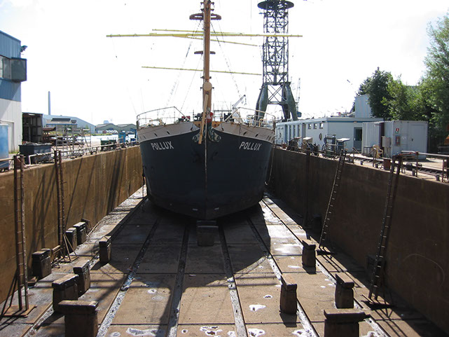 Verder is er een kade om te kunnen afmeren voor de reparaties, afdeling machinefabriek en ijzerwerkloods beschikbaar. Een compleet verhaal.