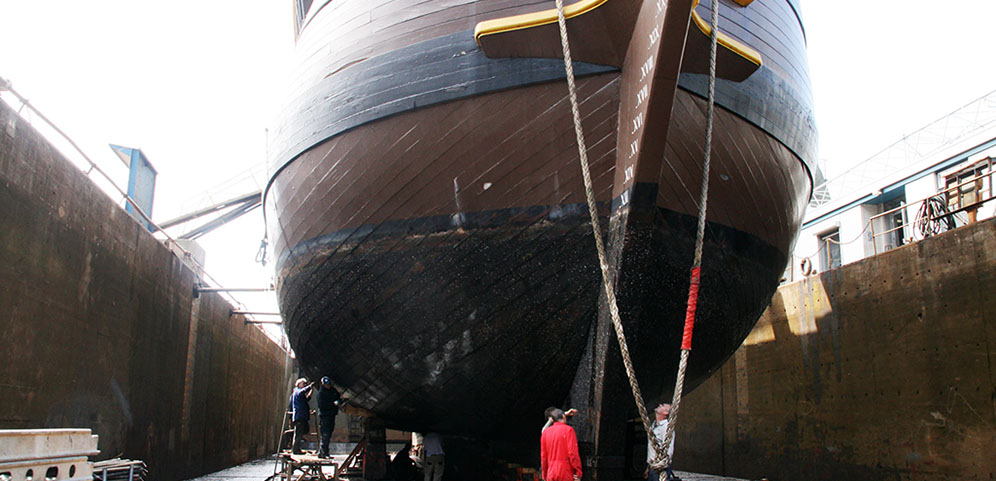 Verder is er een kade om te kunnen afmeren voor de reparaties, afdeling machinefabriek en ijzerwerkloods beschikbaar. Een compleet verhaal.